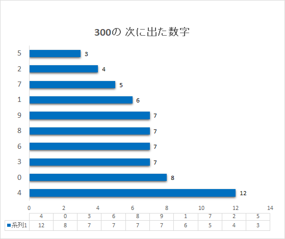 過去の300回のデータを検索した結果 下位2数字が最も出やすい数字です