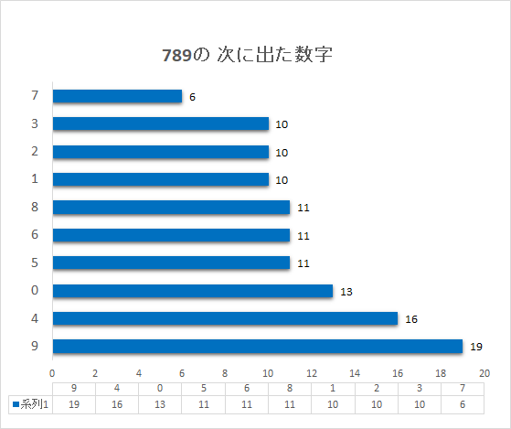 過去に 8・9・7 (ボックス)が出た 次の数字の集計